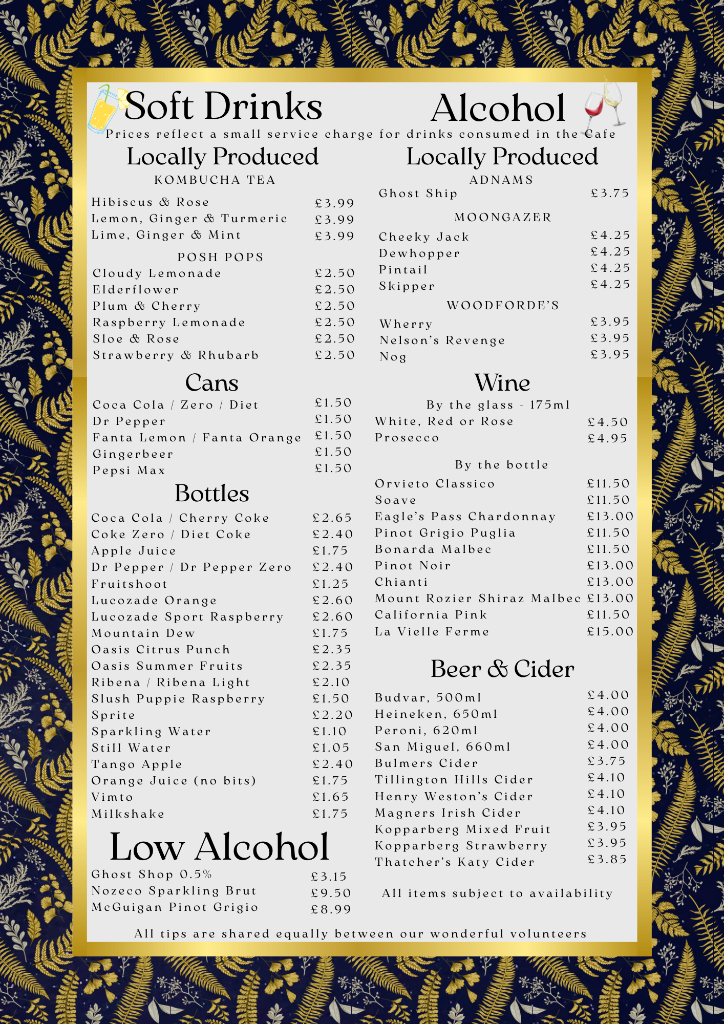 Our fully licensed café is somewhere to relax, catch up with friends and enjoy hot and cold drinks and delicious homemade cakes and snacks.